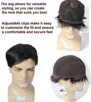 Men's Soft Human Hair With Adjustable clips Glue-less Full Head
